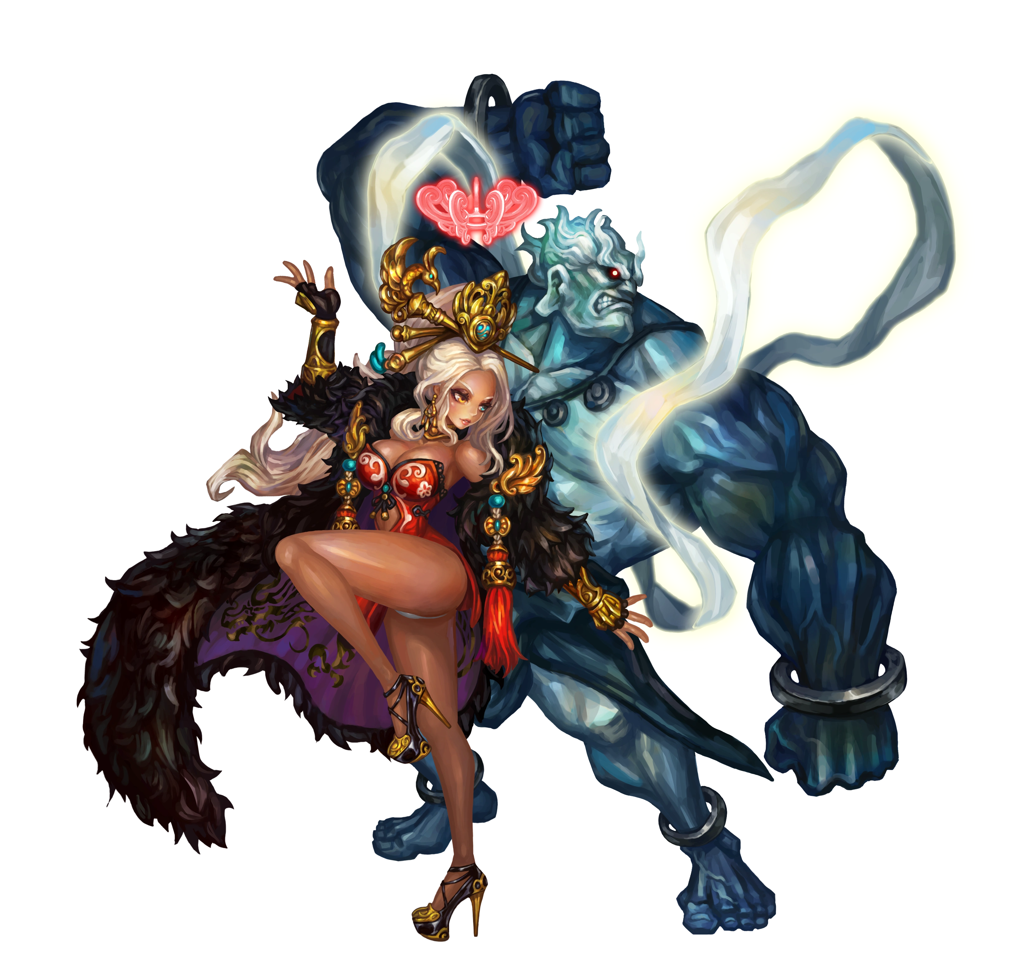 She invokes Izarc, Samurai of the Red Armor and Izarc of the Blue Armor for 54 seconds. When summons are already maintained on the battlefield, reset summons cooldown, and increase STR by 44% and ATK SPD by 37% for both Izarcs. Effect can stack up to 5 times. [CD: 32 sec] - Evil Pledge (Passive 1)