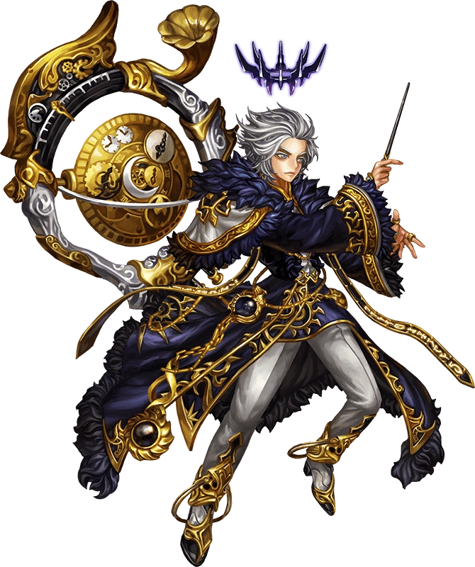 Inflicts 840% damage to entire enemy party. Enemies hit suffer 30% increased debuff time and 30% reduced buff time for 7.1s seconds. [CD: 18.9 sec] - The Conductor of Time (Active 3)